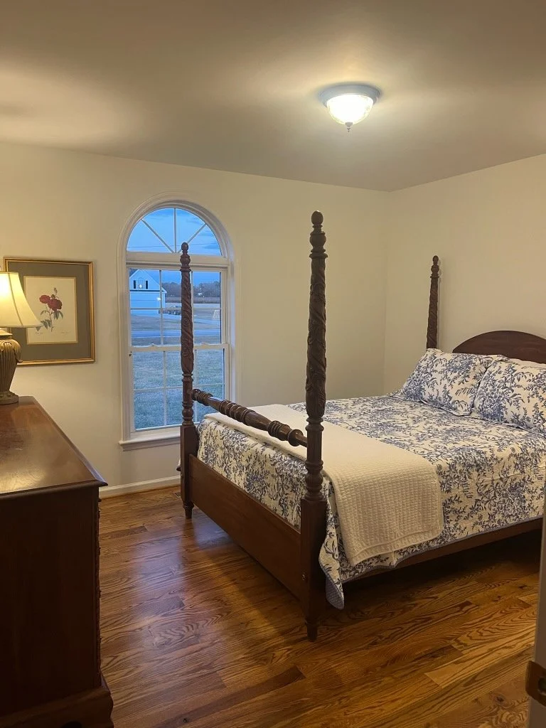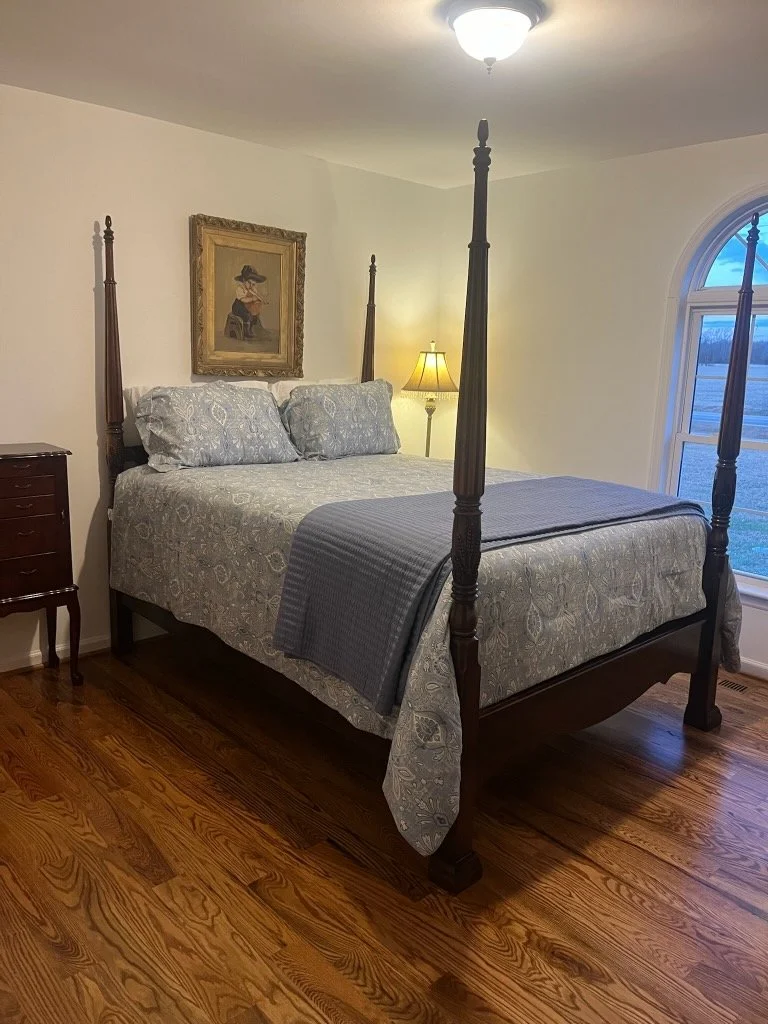 The Braswell Road family home, located at 301 Braswell Road, Goldsboro NC 27530 has three bedrooms and two baths. It sleeps eleven. The home is conveniently located near the venue and has a large backyard, deck, and double-car garage for entertaining. It is beautifully decorated. There are four queen beds, one queen sleeper in the den, and one twin sleeper in the reading room. Sleeps 11. Check-in time is 3 pm and check-out is 11:00am.