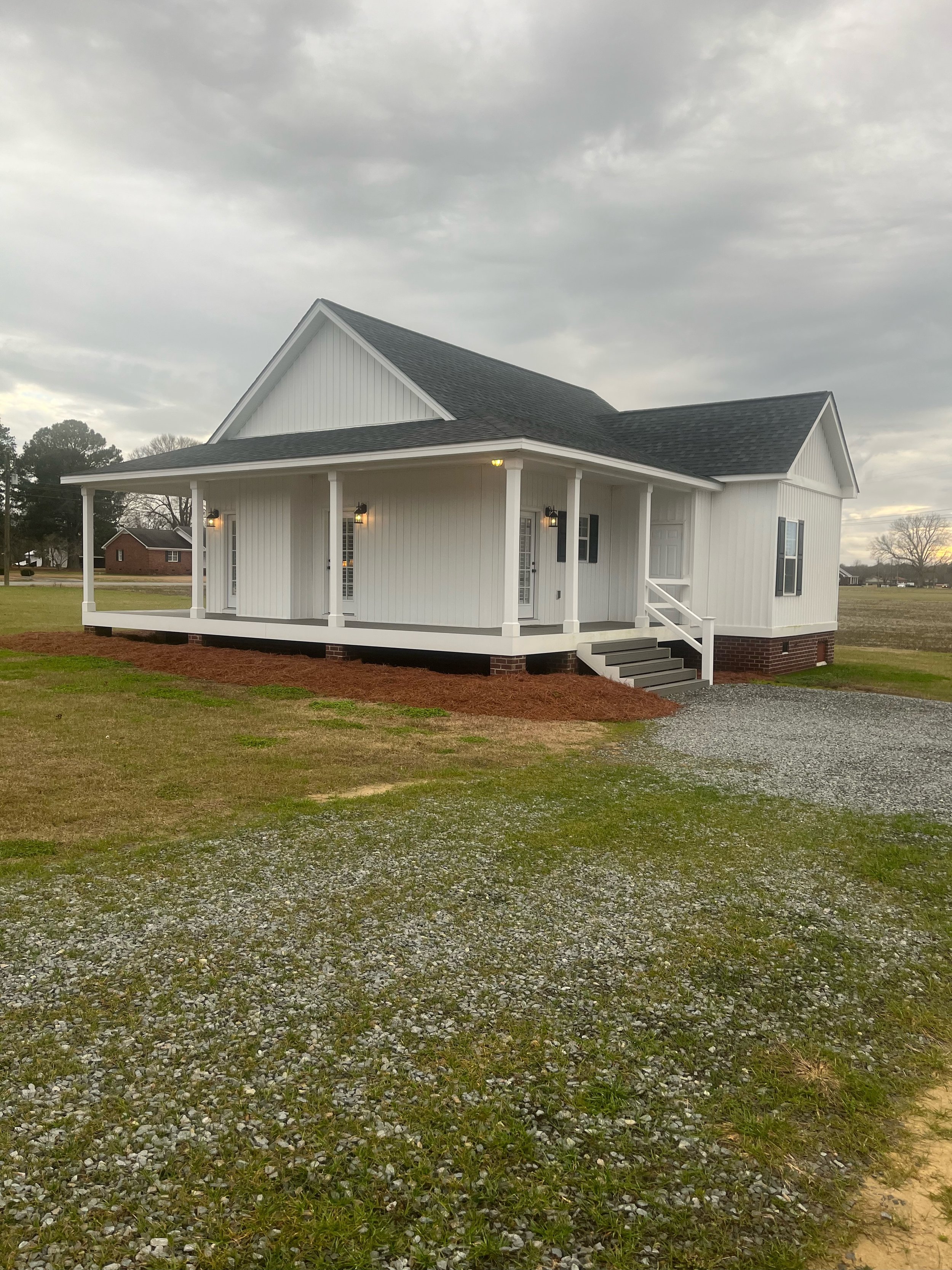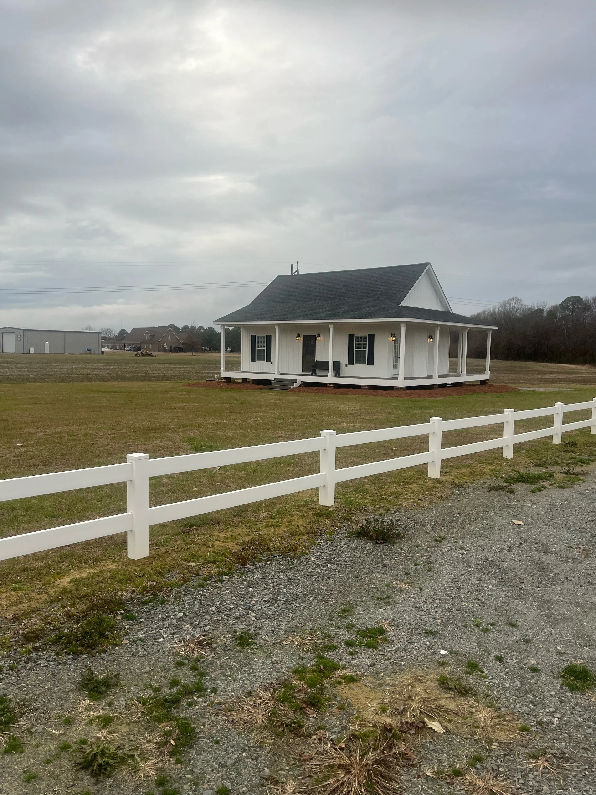 Located at 1574 Old Smithfield Road, Goldsboro NC. The couples cottage is our newly built 2 bedroom, 2 bathroom home perfect for the bride and groom for the night after the "I Dos!" Check-in is at 3 pm and check-out is at 11:00am. Towels & linens are provided in all of the properties for the overnight accommodations. Perfectly located across the parking lot from Carriage Hall on the Birdsong Chapel property. You can walk after your reception to the couples cottage. This house is not considered part of the Birdsong property when renting the venue. It is considered an “add on”.